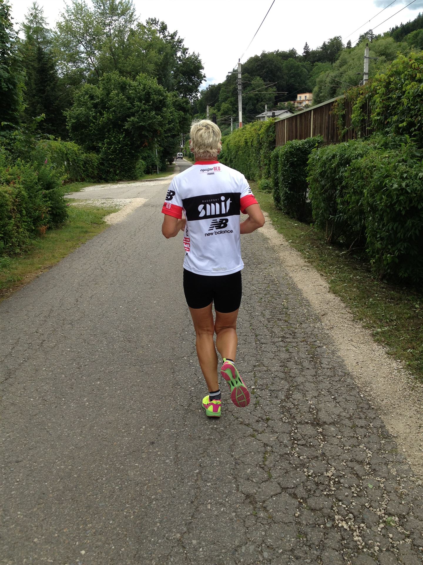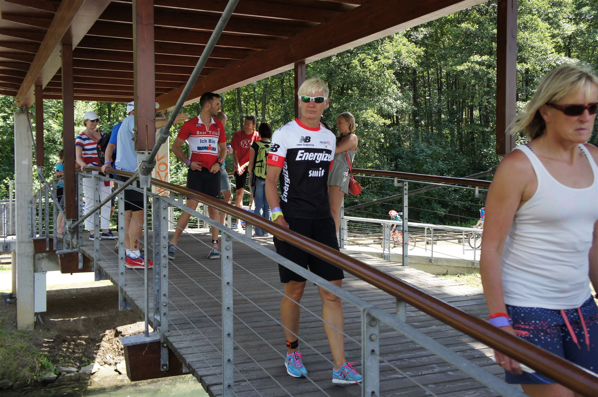 Das Wetter ist prima, die Temperatur liegt bei ca. 26 Grad im Schatten. Es werden 2 Runde á 21 km gelaufen. Von der Wechselzone geht es am Anfang entlang der Lende in Richtung Krumpendorf. In Krumpendorf läuft man eine kurze Strecke durchs Schwimmbad. Es ist schon etwas ungewöhnlich die Badegäste auf den Grünanlagen liegen zu sehen. Danach geht es entlang der Lende nach Klagenfurt Stadtmitte. Einmal um das Wahrzeichen, den Lindwurm herum und wieder zurück in Richtung Ziel. Die Strecke ist sehr abwechslungsreich, es stehen viele Freunde, Familie und Zuschauer an der Strecke. Aufgrund des Gegenverkehrs der anderen Läufer hat man immer etwas zu schauen. Das Anfeuern durch die Zuschauer puscht jeden Athleten. Die Schmerzen sind alle vergessen, man genießt die tolle Stimmung. Auf der 2. Runde habe ich leichte Probleme mit den Oberschenkeln und den Waden. Ich lasse mich davon jedoch nicht beirren, einfach nur weiterlaufen. Die Unterführung nach Klagenfurt sowie die Bordsteinkanten in der Stadtmitte bereiten mir etwas Probleme, aber egal, da macht man einfach etwas langsam.