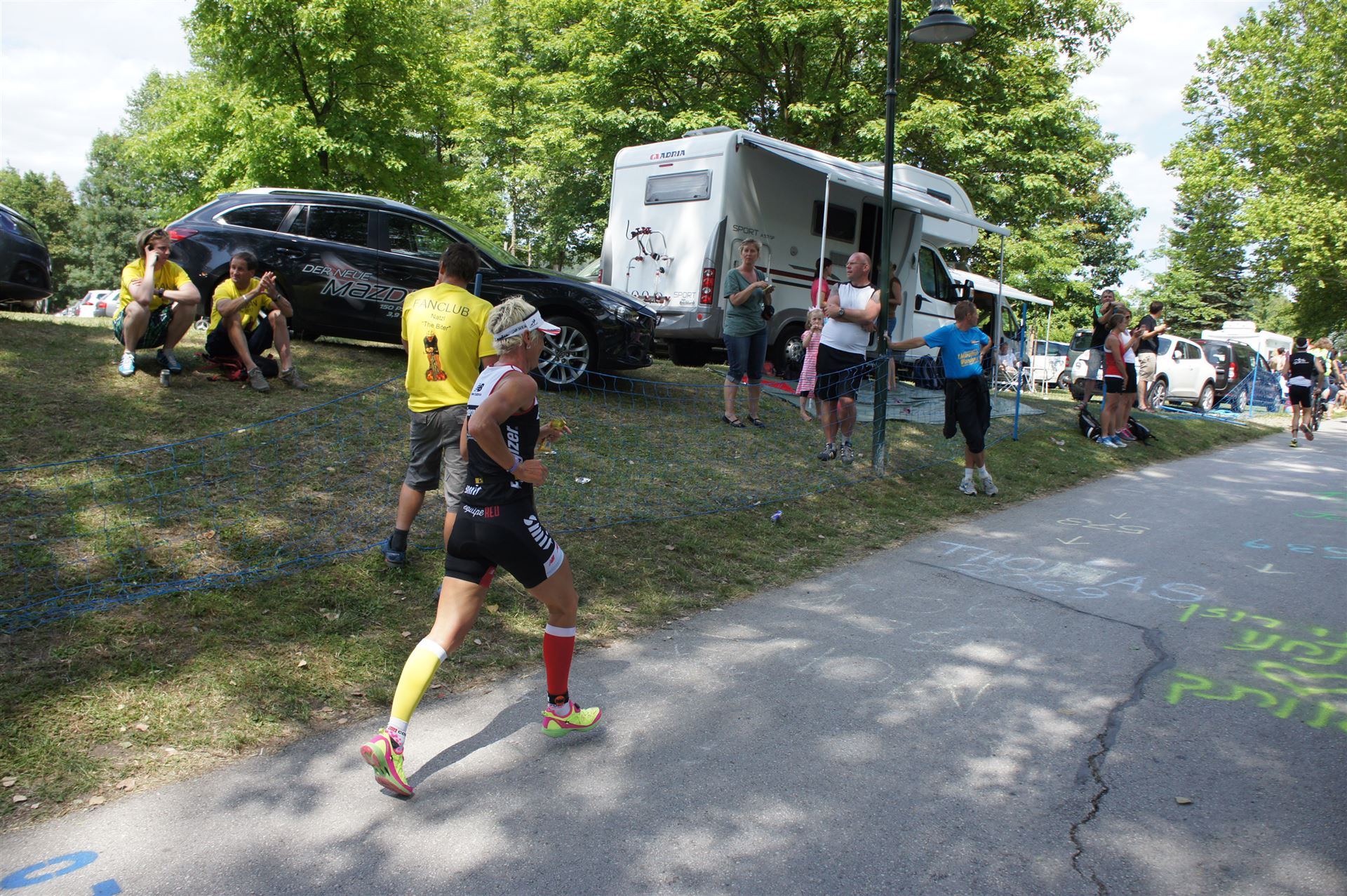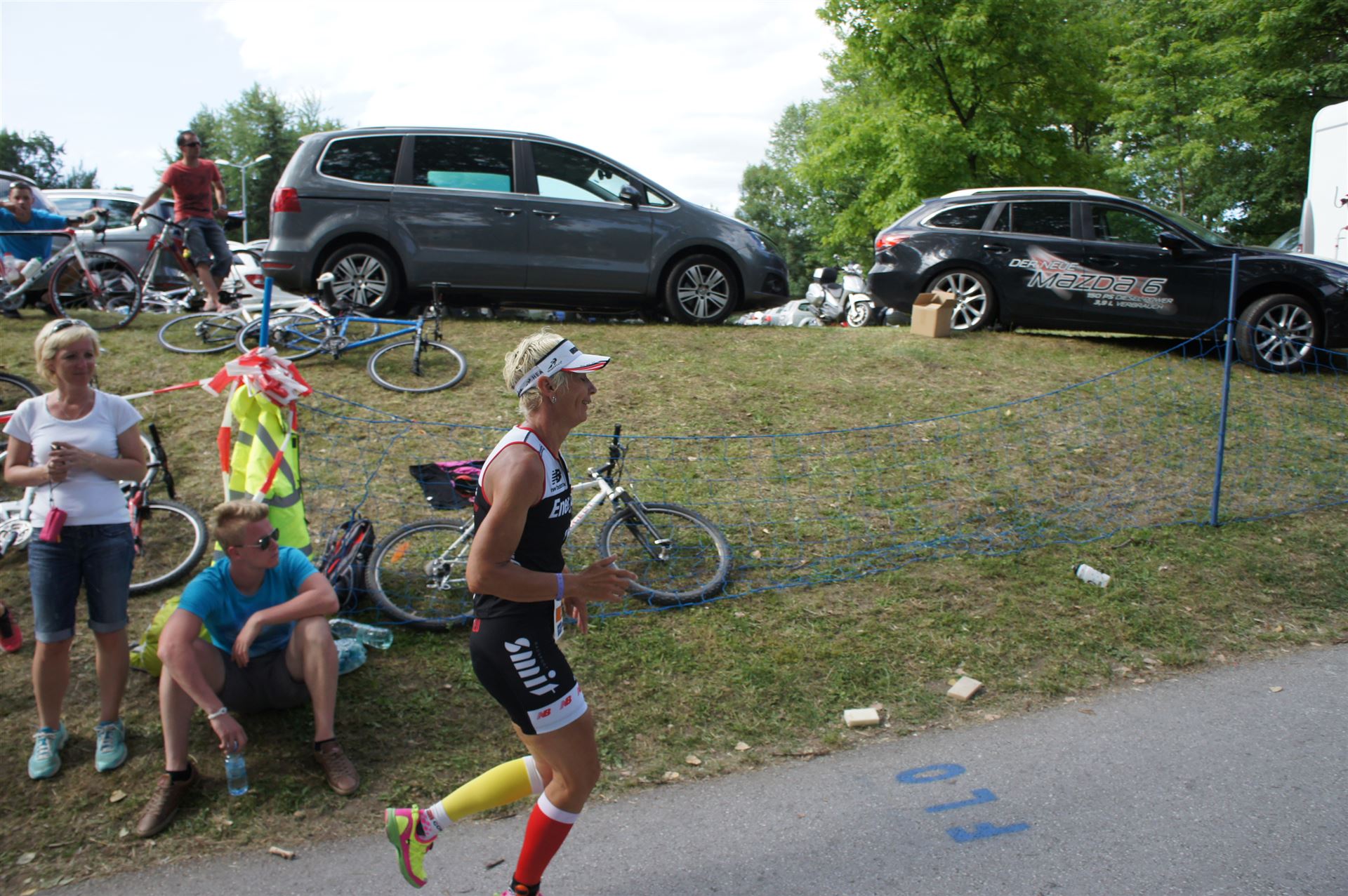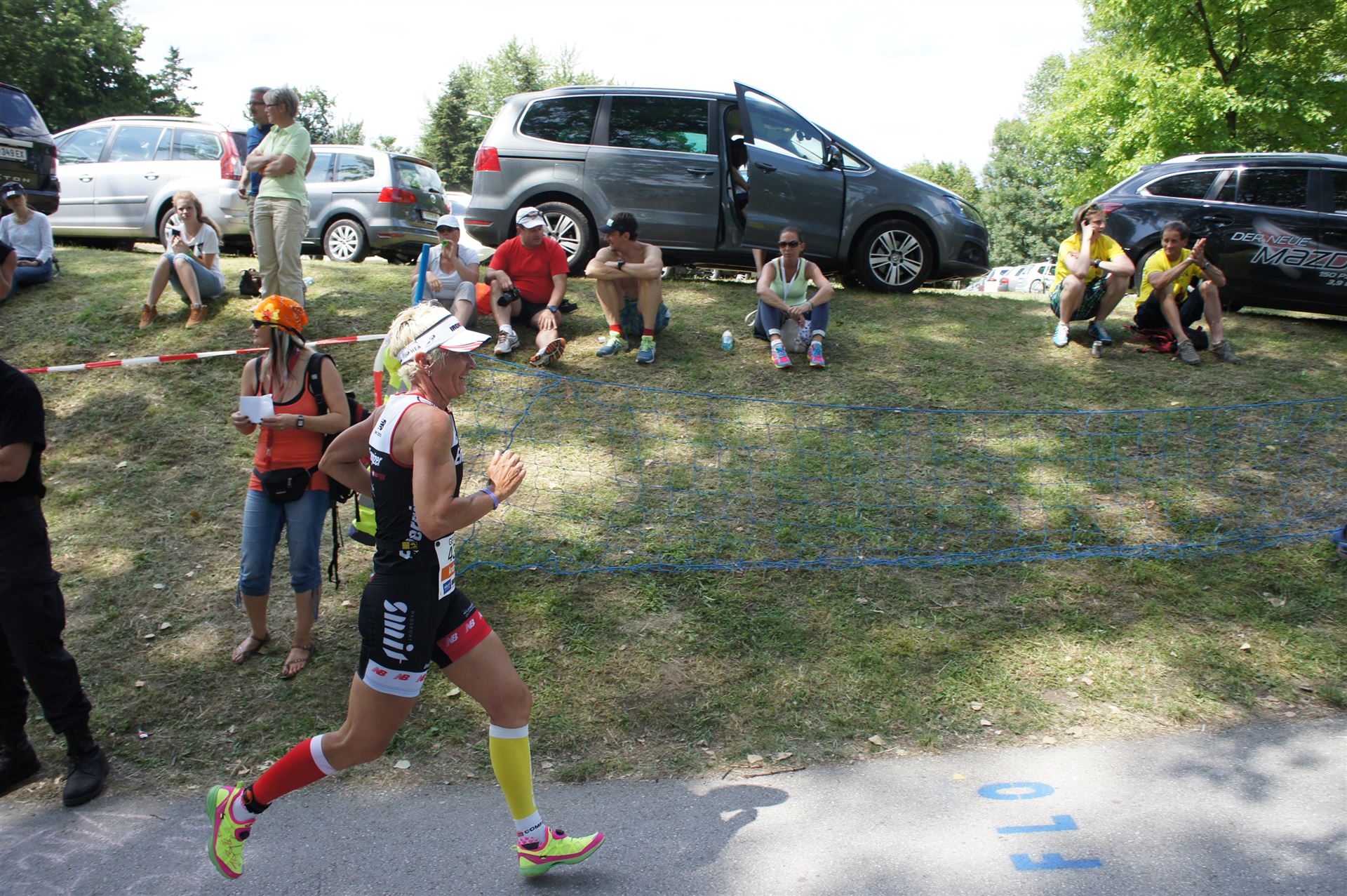 Auch hier gibt es viele Fans an der Strecke. Der DJ feuert mich mit der Bemerkung "Ironlady" an, ich kurble den Berg hoch.