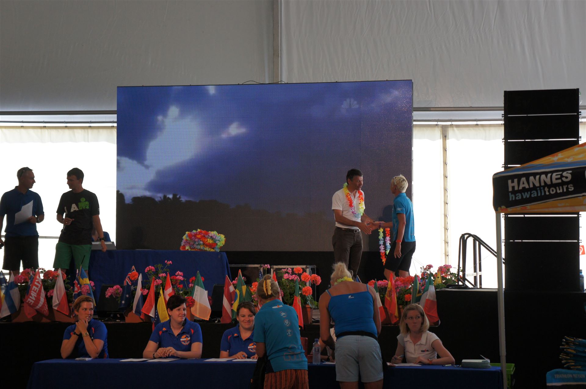 Ich bin geduscht, etwas essen kann ich an diesem Tag nichts mehr. Mein Rad sowie meine übrige Kleidung habe ich bereits aus der Wechselzone geholt. Es geht wieder zurück an die Finisherline. Die Stimmung ist gigantisch. Jeder einzelne Athlet wird von den Moderatoren und vom Publikum begrüßt. Der Zieleinlauf ist bis 00:00 Uhr geöffnet, danach gibt es noch ein Feuerwerk.