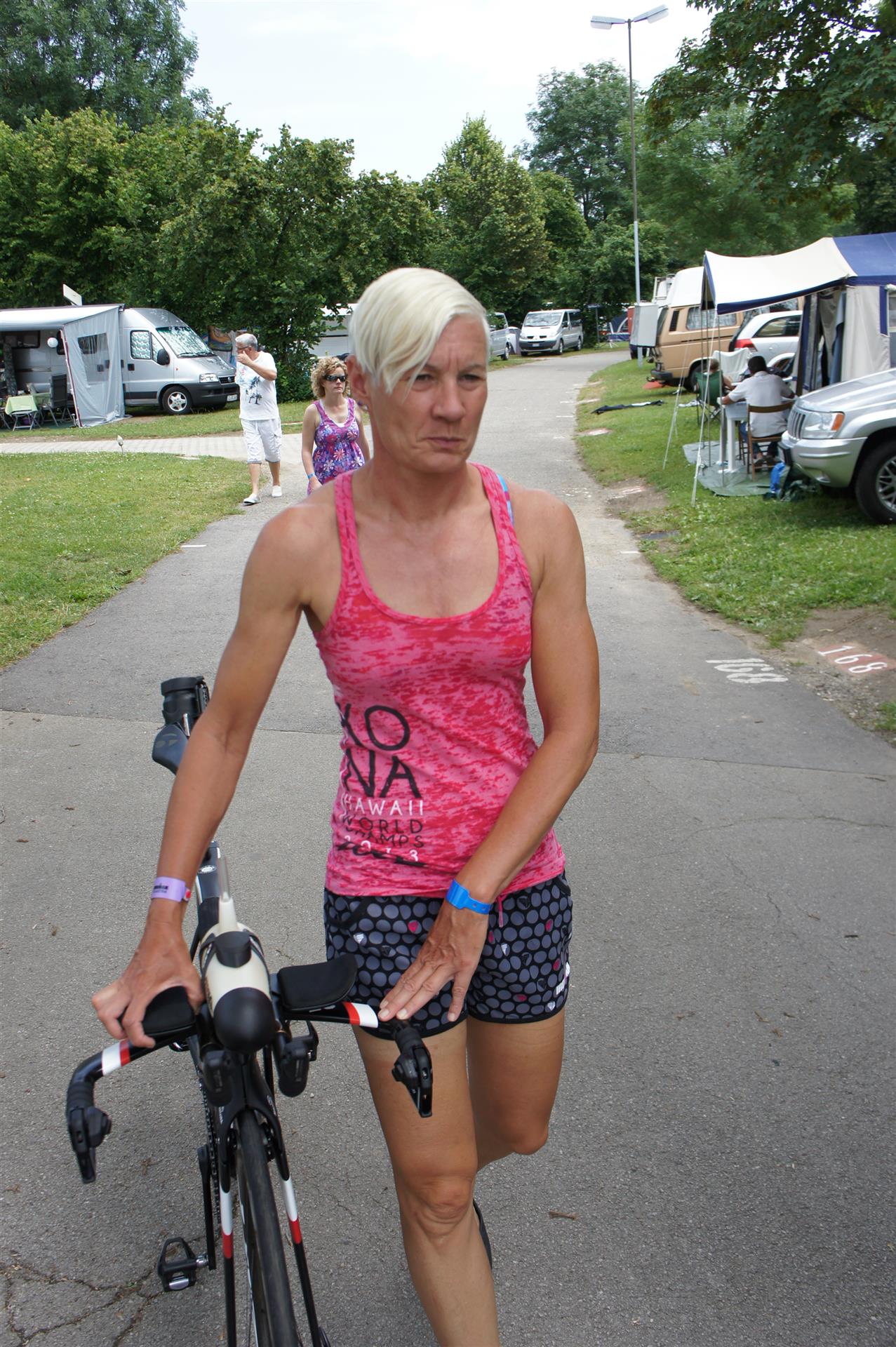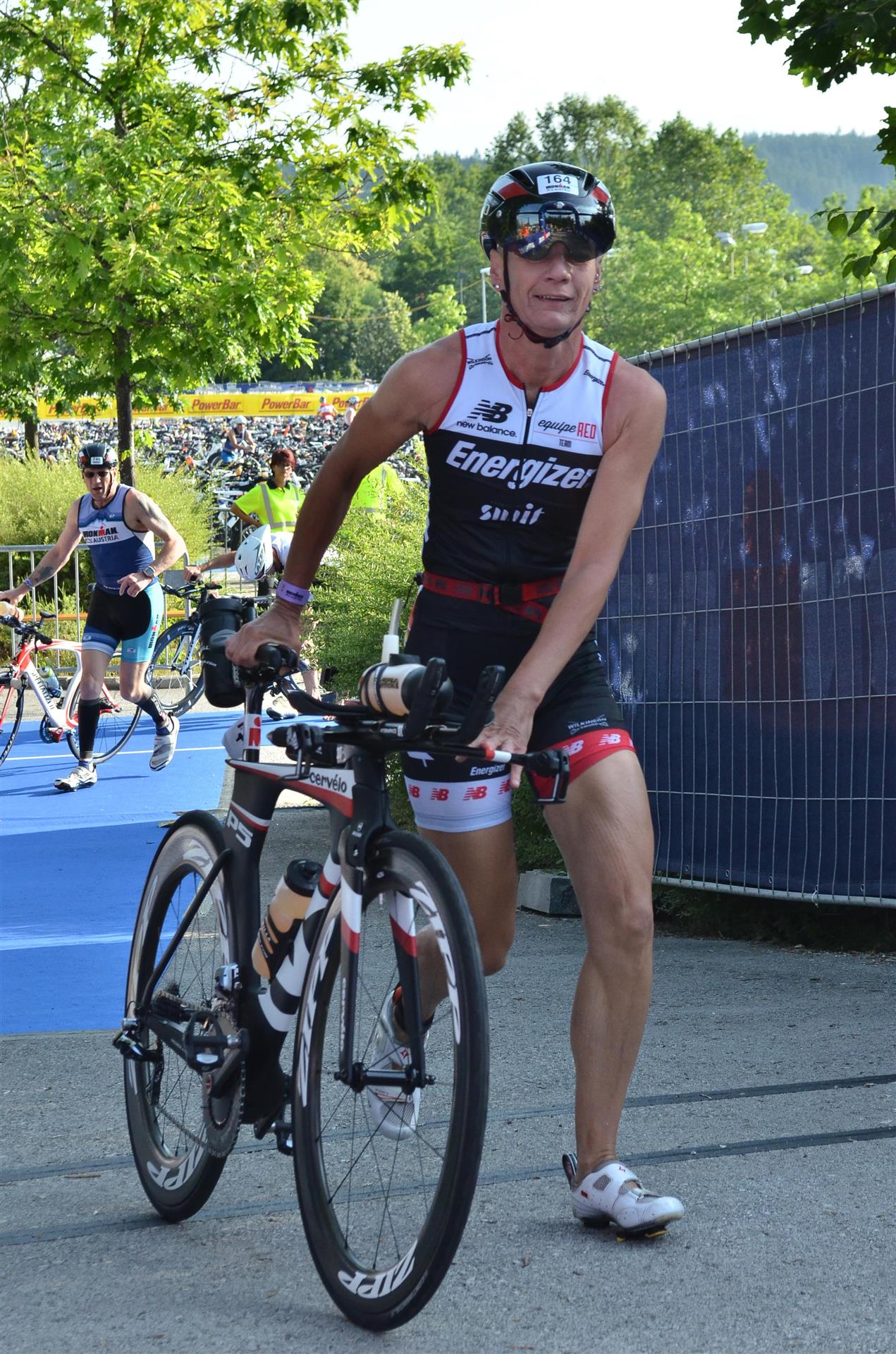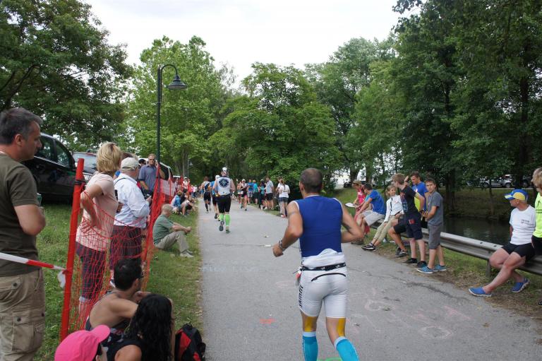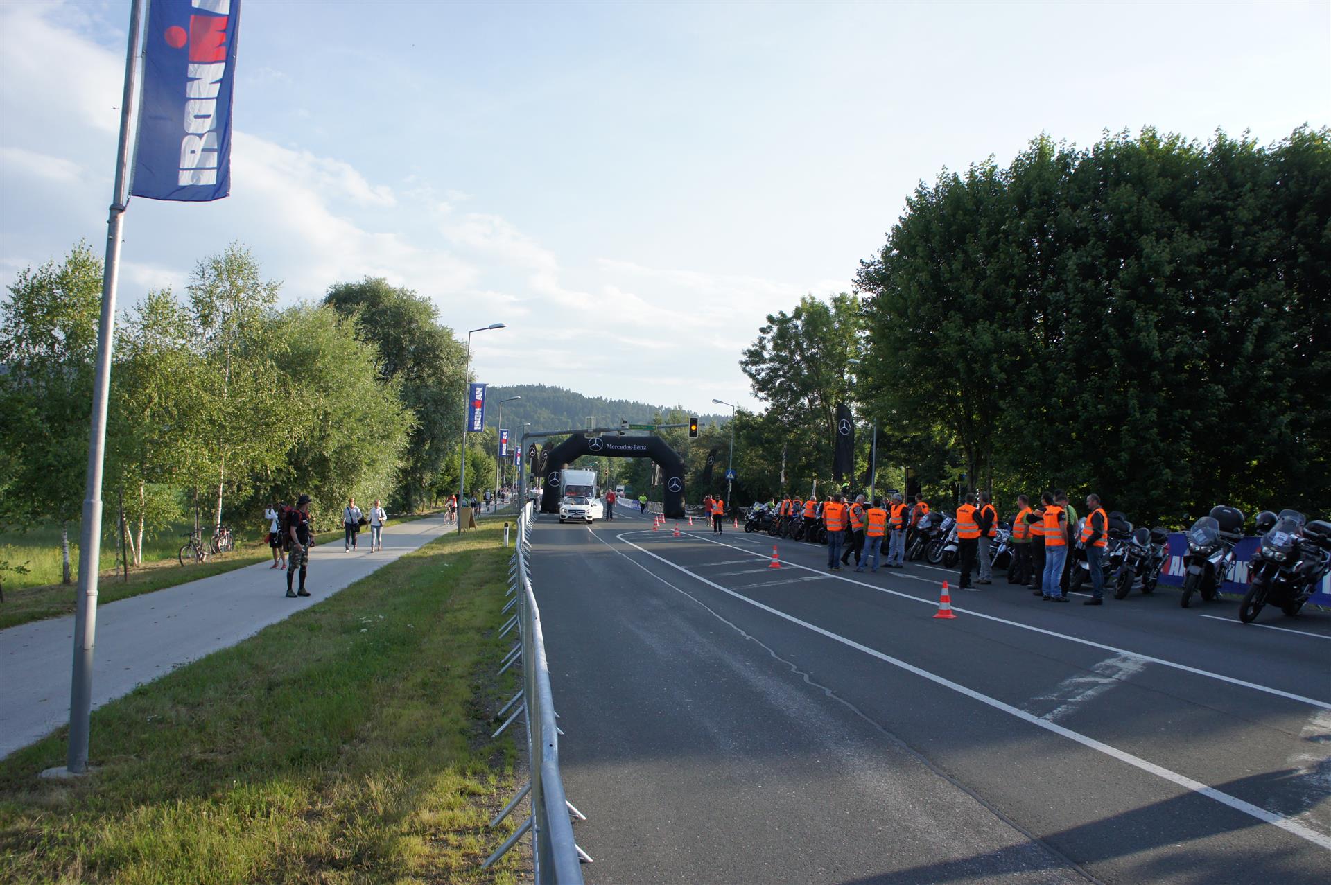 In der Wechselzone schnell die Radutensilien anziehen und ab aufs Rad. Es geht erst einmal Richtung Station bevor man dann am Wörthersee entlang fährt. Die ersten Kilometer ist die Radstrecke noch relativ voll. Das Feld muss sich langsam auseinander ziehen.