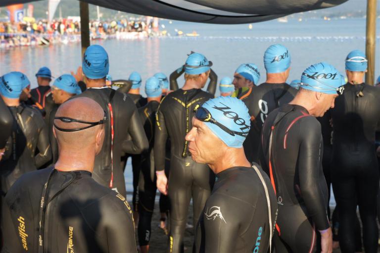 Wie bereits im Vorjahr gab es wieder eine frühere Startgruppe, die bereits um 6:45 Uhr zeitgleich mit den Profis startete. Glücklicherweise war ich in dieser Gruppe, was den Schwimmstart und das Schwimmen doch etwas angenehmer machte. Es ist schon ein Unterschied ob man mit ca. 2.600 Athleten an den Start geht oder nur mit einigen 100.
