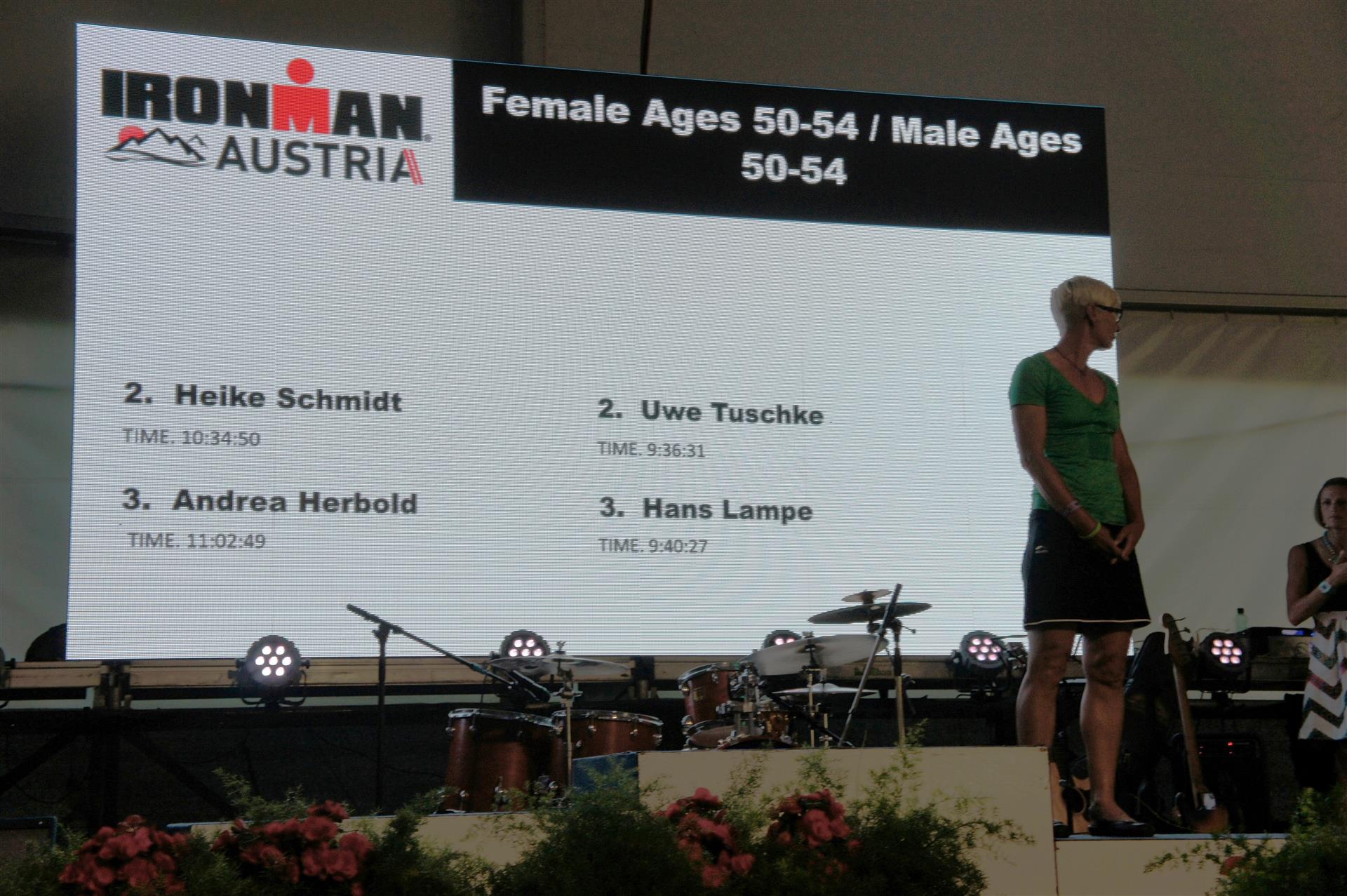 Die Leute sind jedoch sehr hilfsbereit und nett. Zwischen durch kann ich immer mal wieder Laufen bis der nächste Krampf kommt. Es sind ja nur noch 10 Kilometer bis zum Ziel. Ich überschlage zwischendurch die noch verbleibende Zeit und bin relativ entspannt, da ich noch ausreichend Zeit habe. Trotz dieser Strapazen erreiche ich nach 11 Stunden und 2 Minuten überglücklich die Finisherline (Lauf 3:52) und bin total erstaunt, als der Sprecher beim Zieleinlauf durchsagt, dass ich in meiner Altersklasse auf Platz 3 bin.