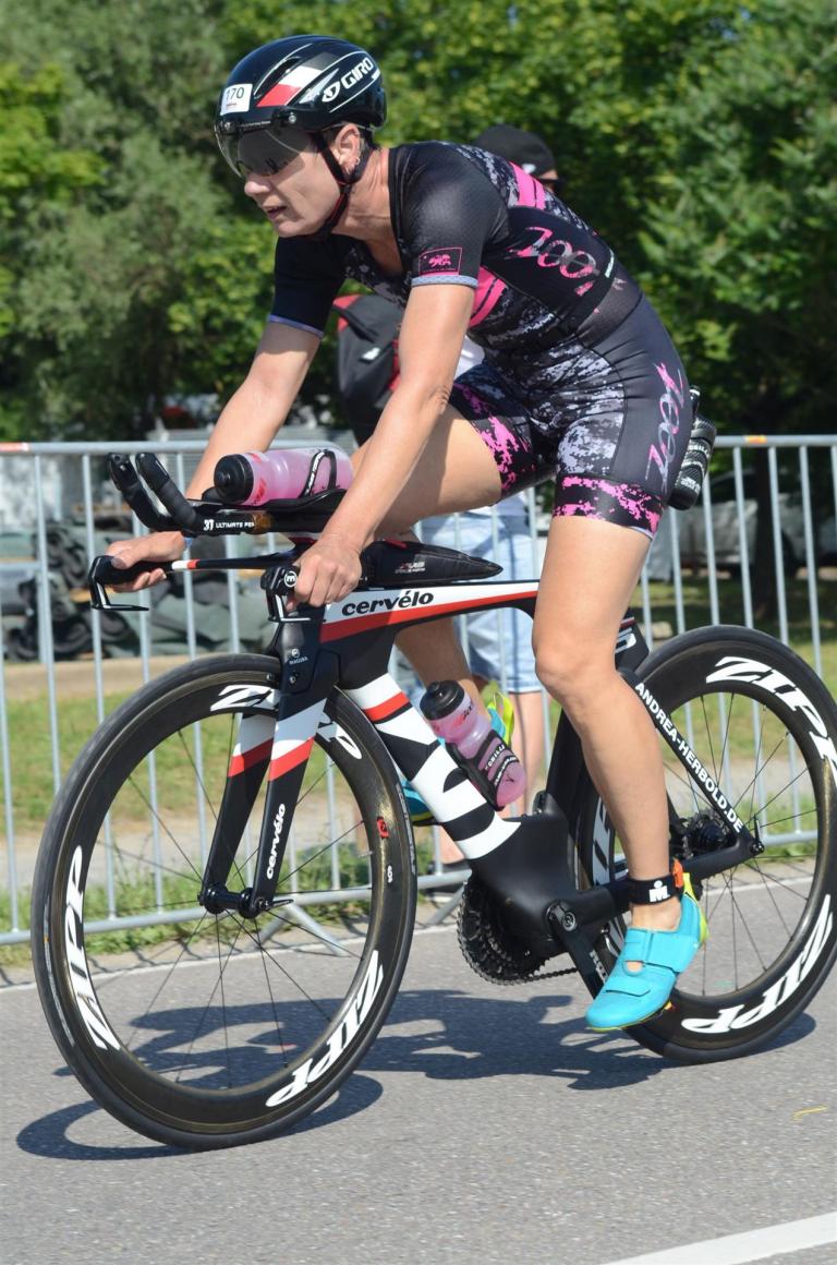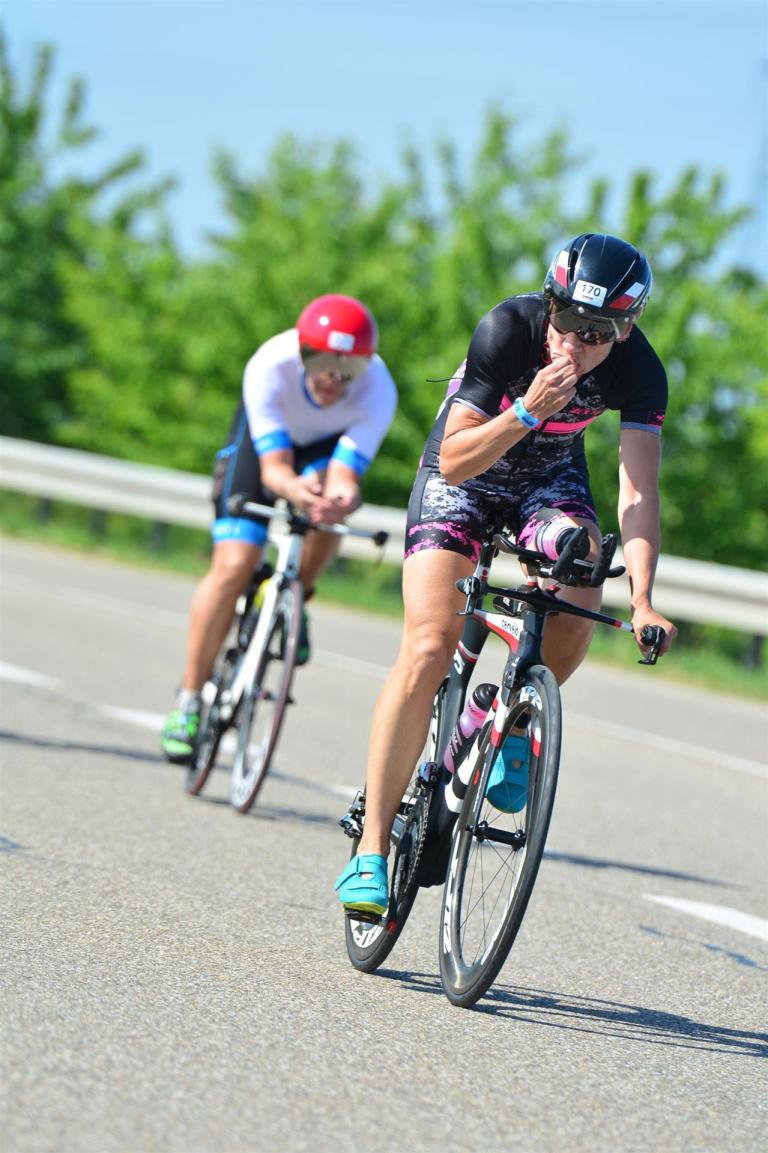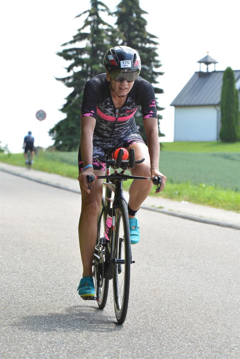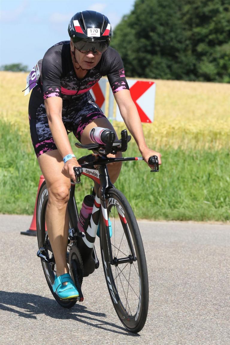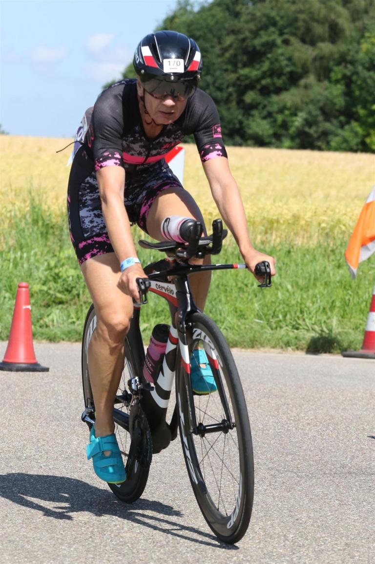 Geschwommen wurde im Hardtsee in Ubstadt-Weiher. Bei einer Wassertemperatur von 23,7 Grad durften wir mit Neo schwimmen, für die Profis galt Neoverbot. Mit einer Schwimmzeit von 36:25 ging ich als 3. Frau in meiner AK aus dem Wasser.