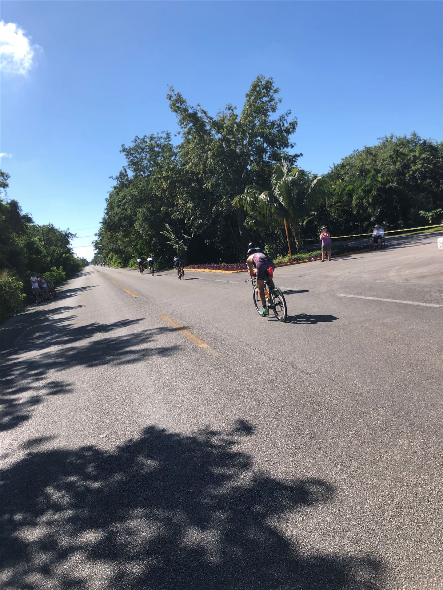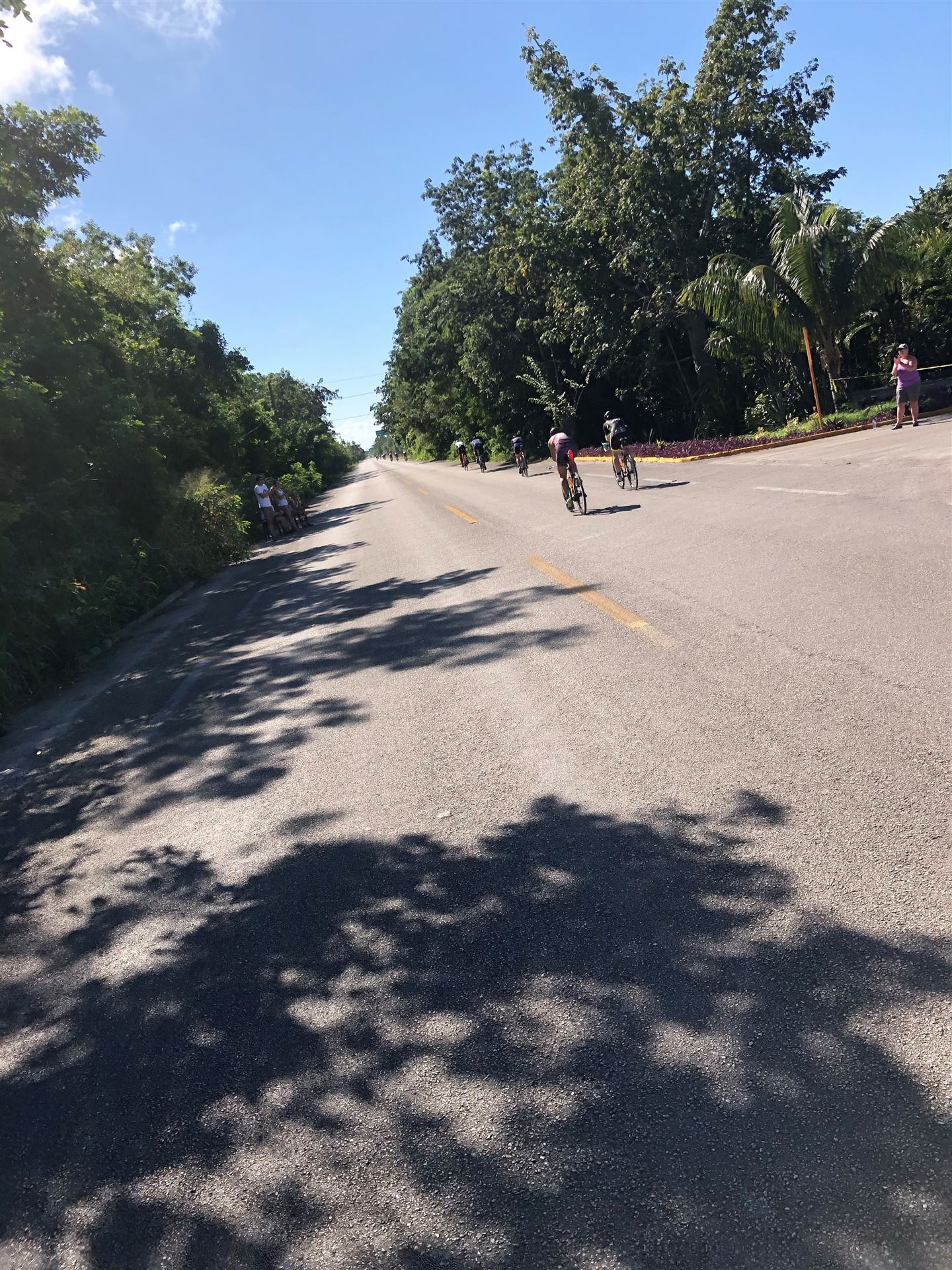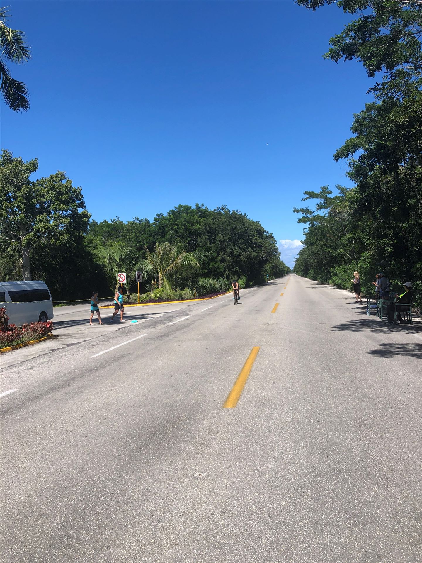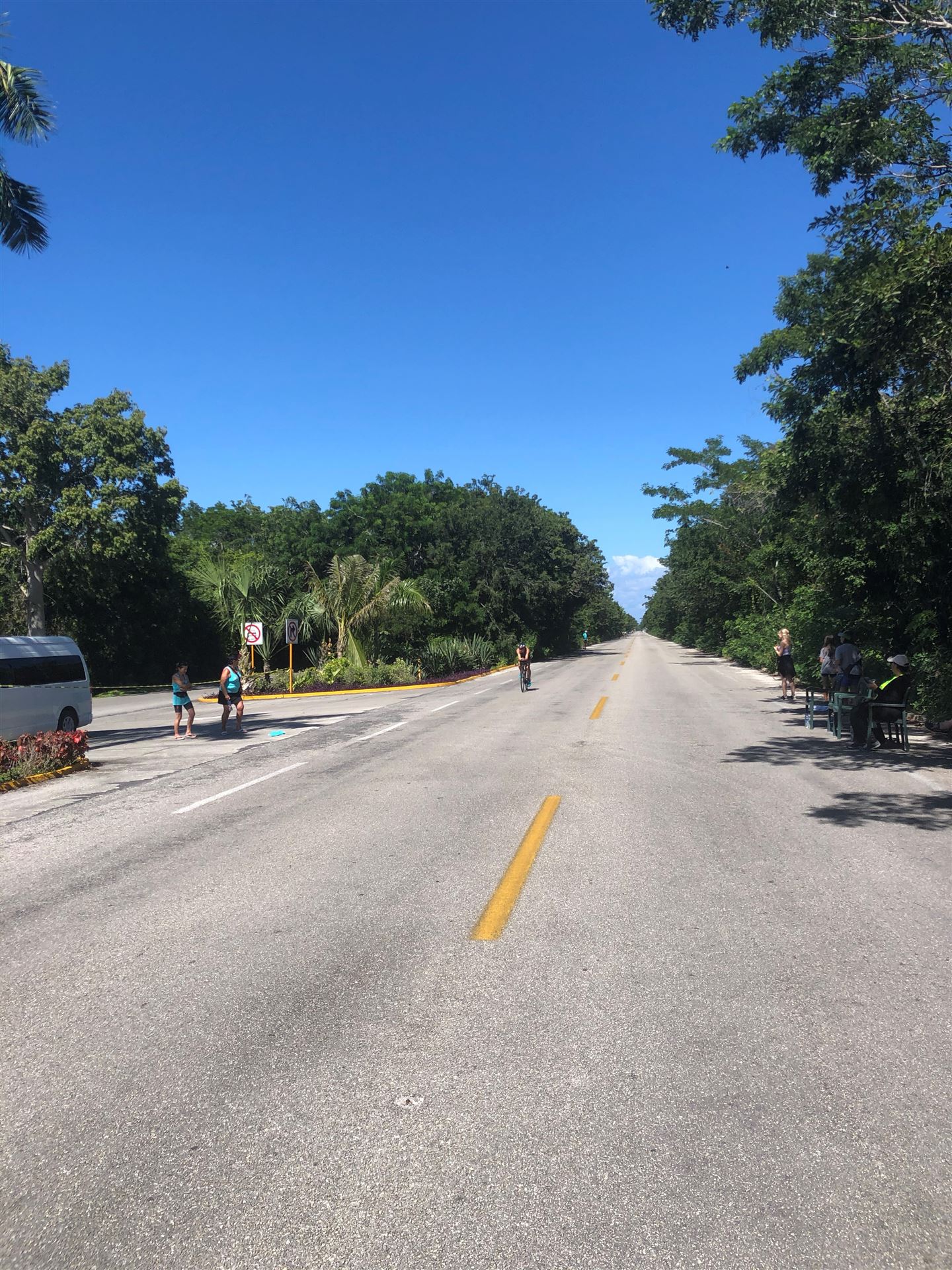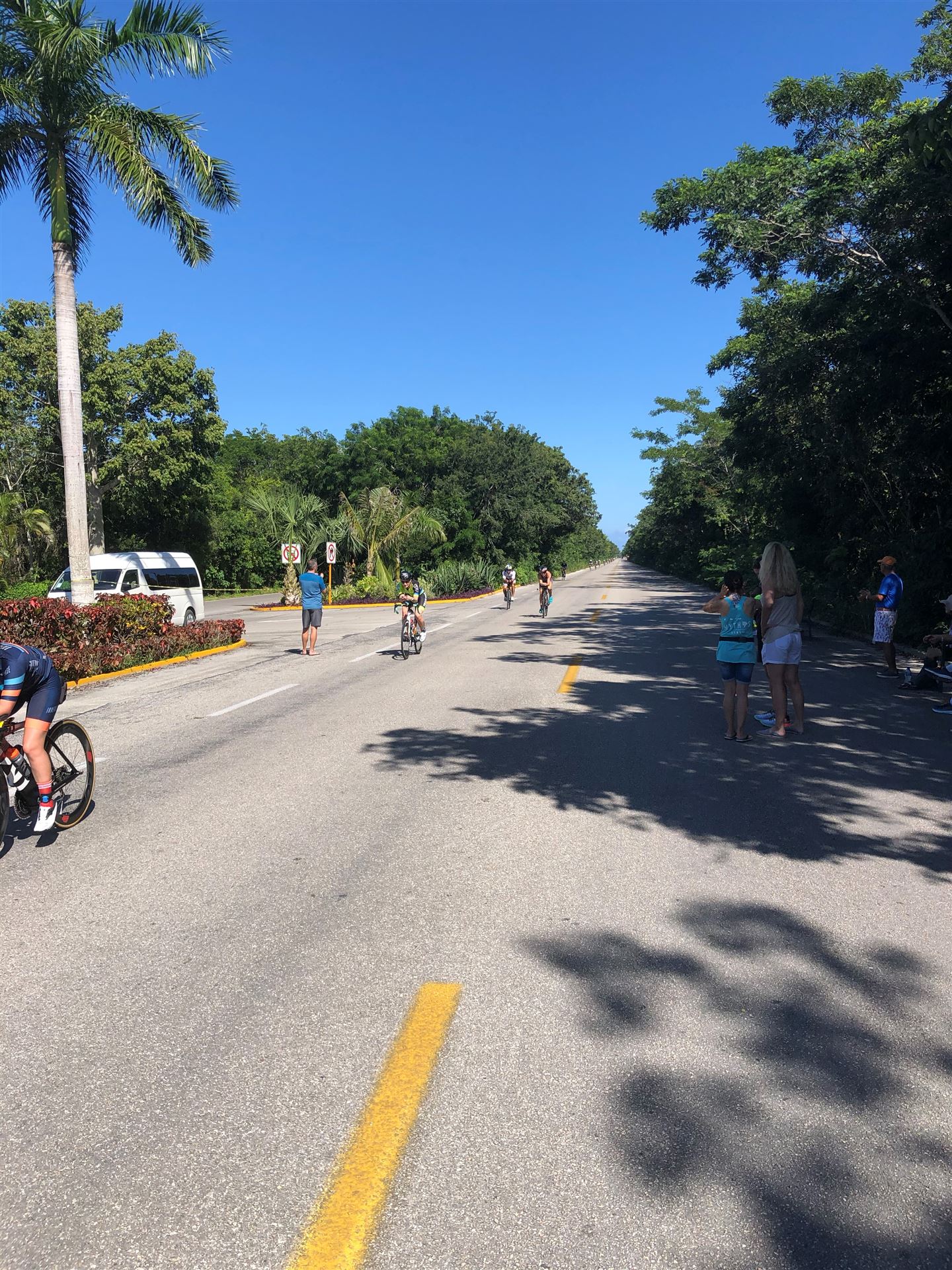 Um kurz vor 7:00 Uhr ist die Nacht vorbei. Da es relativ früh dunkel wird, steht man auch entsprechend früh auf. Nach dem Frühstück geht es mit dem Rad los. Einmal die Wettkampfstrecke abfahren, sprich einmal um die Insel. Inzwischen sind einige Athleten unterwegs. Es gibt einen tollen Radweg, der fast komplett parallel zur Straße geht. Es gibt kaum Verkehr, der Wind ist okay, die Wettkampfstrecke ohne Überraschungen. Unterwegs gibt es sogar Schilder mit dem Hinweis Athleten im Training. Eine Runde sind circa 63 Kilometer, fast alles mit Radweg. Nur das Stück durch die Stadt ist etwas blöd, der Rest jedoch perfekt. Im Anschluss an das Rad fahren stehen noch 30 Minuten lockere Grundlage Laufen auf dem Plan. Danach liegen wir etwas im Schatten am Pool. Inzwischen sind noch einige Athleten im Club angekommen. Zum Abendessen gibt es heute mal Buffet, danach noch etwas chillen und dann ab ins Bett.