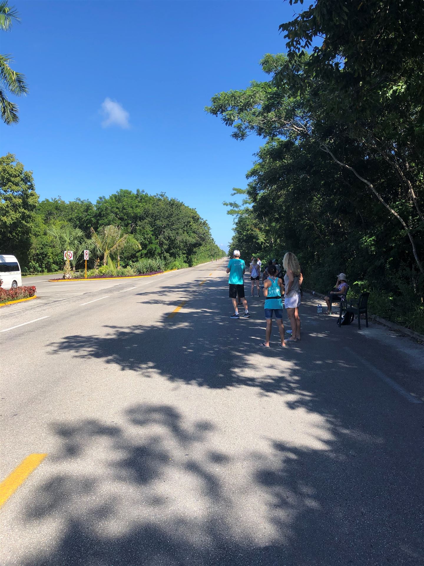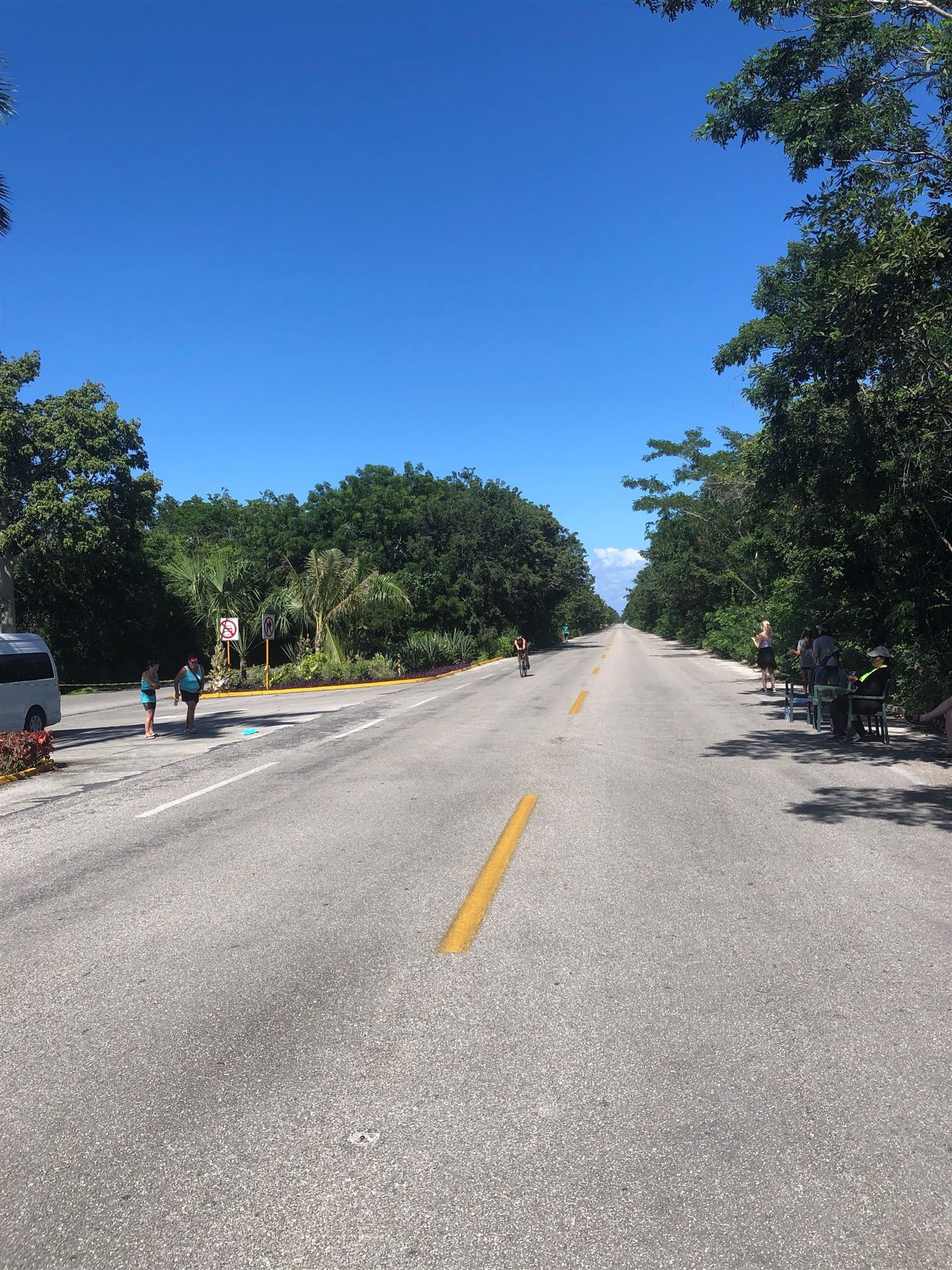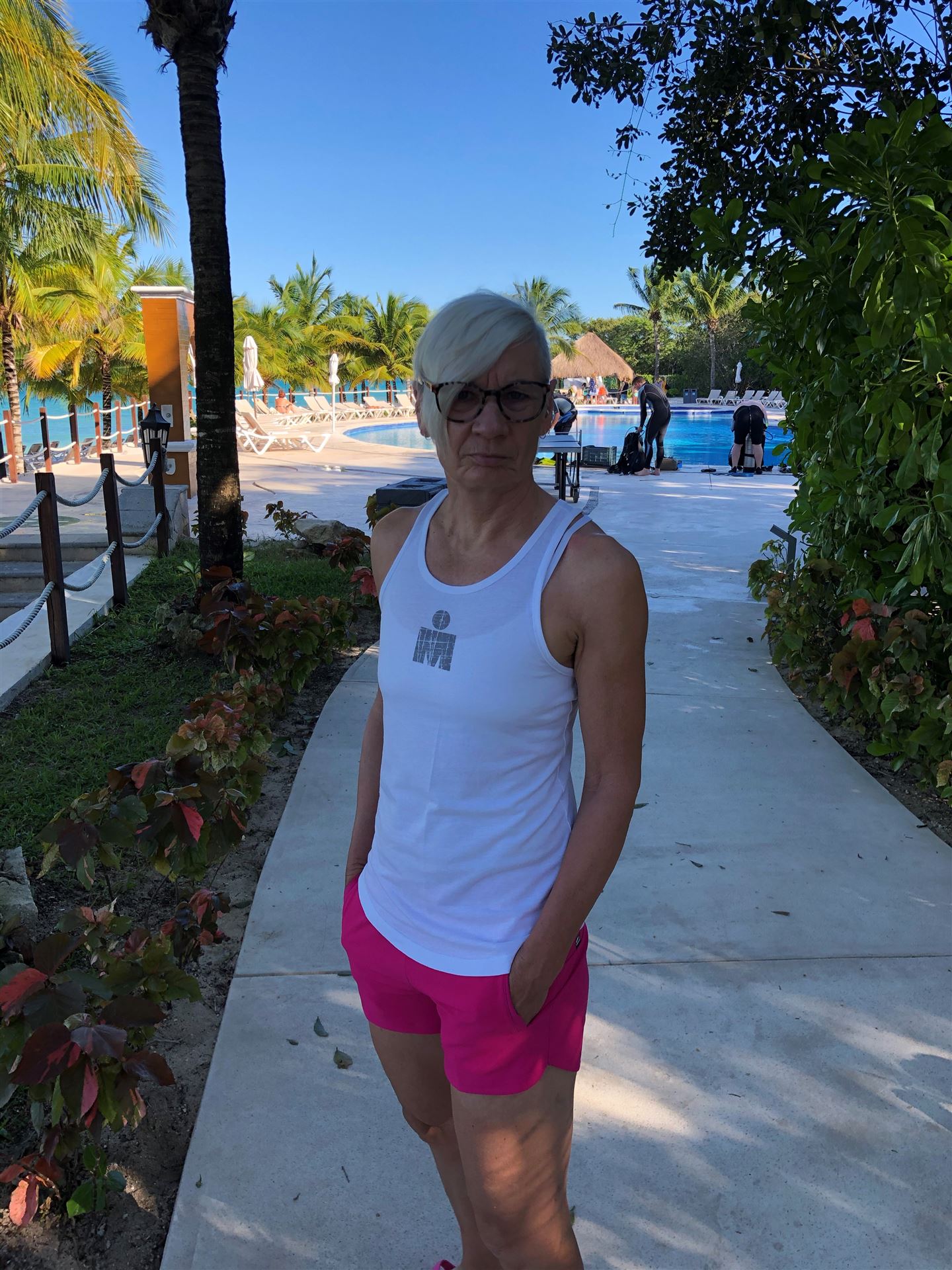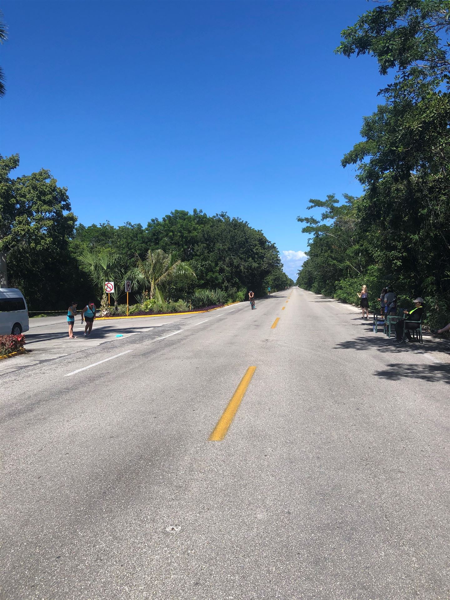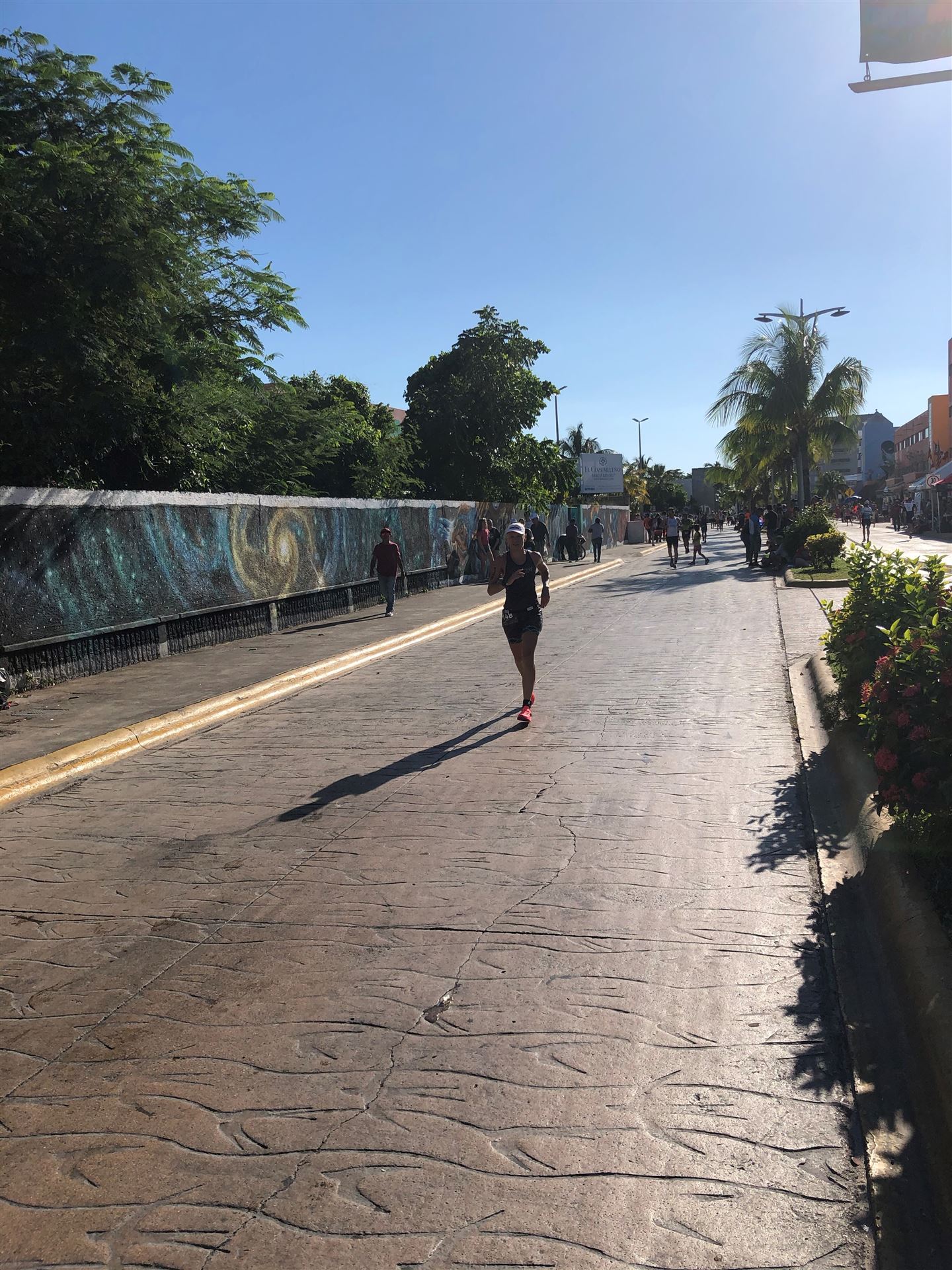 Um kurz vor 7:00 Uhr ist die Nacht vorbei. Da es relativ früh dunkel wird, steht man auch entsprechend früh auf. Nach dem Frühstück geht es mit dem Rad los. Einmal die Wettkampfstrecke abfahren, sprich einmal um die Insel. Inzwischen sind einige Athleten unterwegs. Es gibt einen tollen Radweg, der fast komplett parallel zur Straße geht. Es gibt kaum Verkehr, der Wind ist okay, die Wettkampfstrecke ohne Überraschungen. Unterwegs gibt es sogar Schilder mit dem Hinweis Athleten im Training. Eine Runde sind circa 63 Kilometer, fast alles mit Radweg. Nur das Stück durch die Stadt ist etwas blöd, der Rest jedoch perfekt. Im Anschluss an das Rad fahren stehen noch 30 Minuten lockere Grundlage Laufen auf dem Plan. Danach liegen wir etwas im Schatten am Pool. Inzwischen sind noch einige Athleten im Club angekommen. Zum Abendessen gibt es heute mal Buffet, danach noch etwas chillen und dann ab ins Bett.