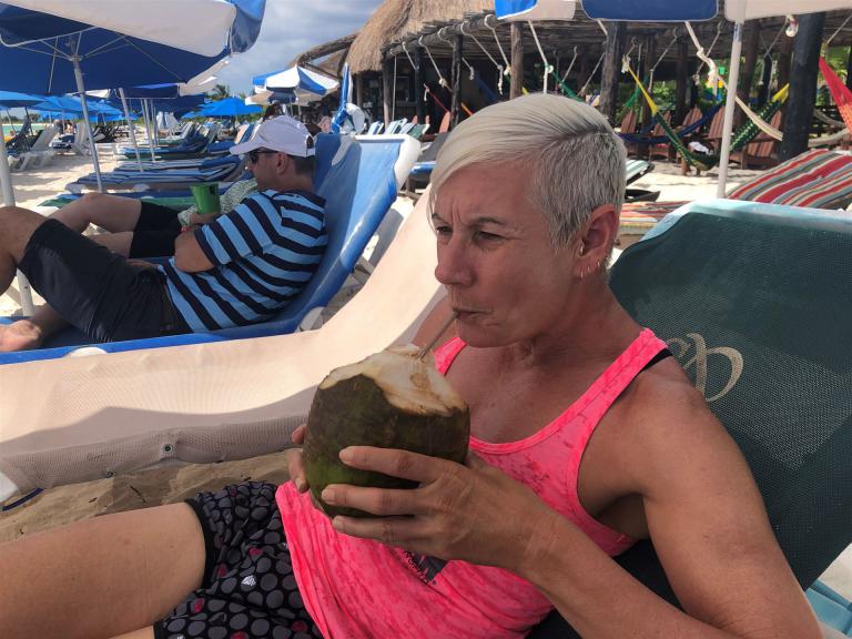 Die Anreise nach Cozumel hat relativ gut geklappt. Wir sind leider etwas später in Frankfurt abgeflogen und hatten bei der Ankunft in Cancun 1 Stunde Verspätung. Die Einreise nach Mexiko ist nervig. Ewig lange Schlangen, in der Summe hat es zwei Stunden gedauert, bis wir endlich draußen waren. Erfreulich war, dass unser Gepäck bereits abholbereit da stand. Am Ausgang wurden wir bereits erwartet, innerhalb von 5 Minuten war ein Taxi da und es ging in Richtung Fährhafen, die Tickets waren bereit für uns reserviert. Die Fahrt war relativ lange. Das letzte Stück mussten wir zu Fuß gehen Mit zwei Rädern und zwei Koffern über Kopfsteinpflaster, das macht Laune. Unterwegs wurde uns von Mexikanern zugerufen wir sollen uns beeilen, die Fähre legt in 4 Minuten ab. Also noch einmal Tempo zugelegt und gerade noch geschafft. Auf der Fähre gab es Livemusik, Songs von Santana. Mal etwas anderes.