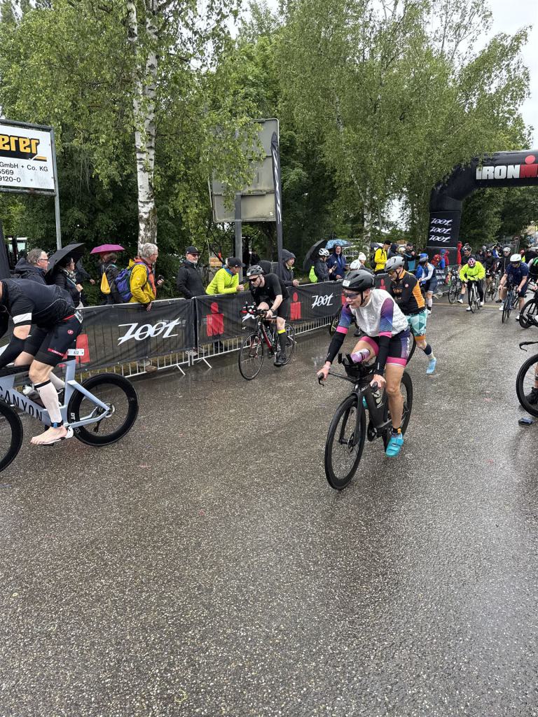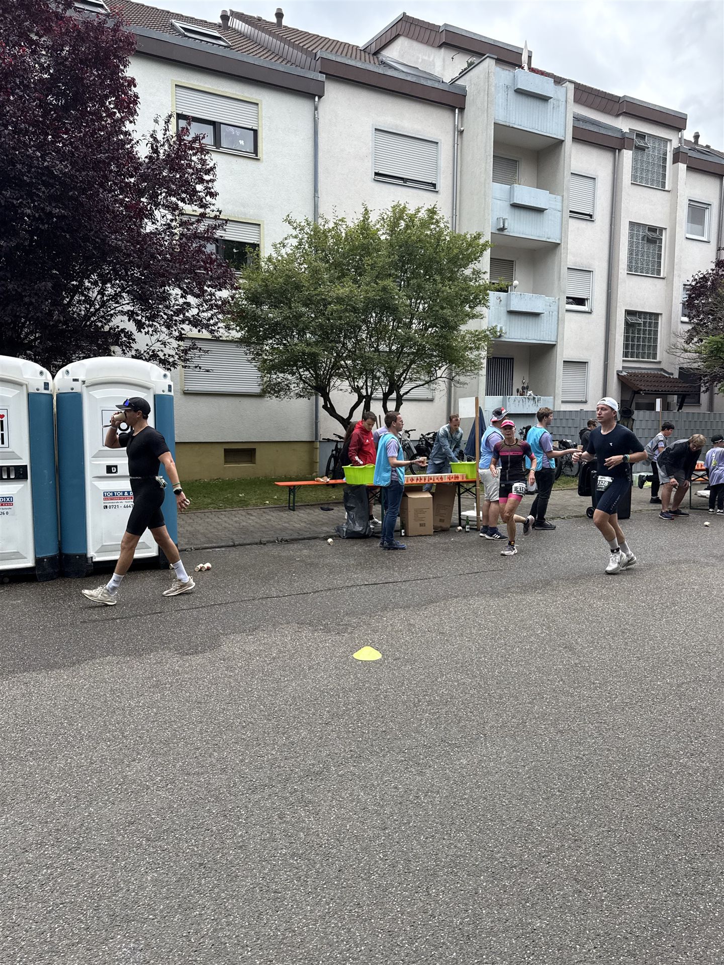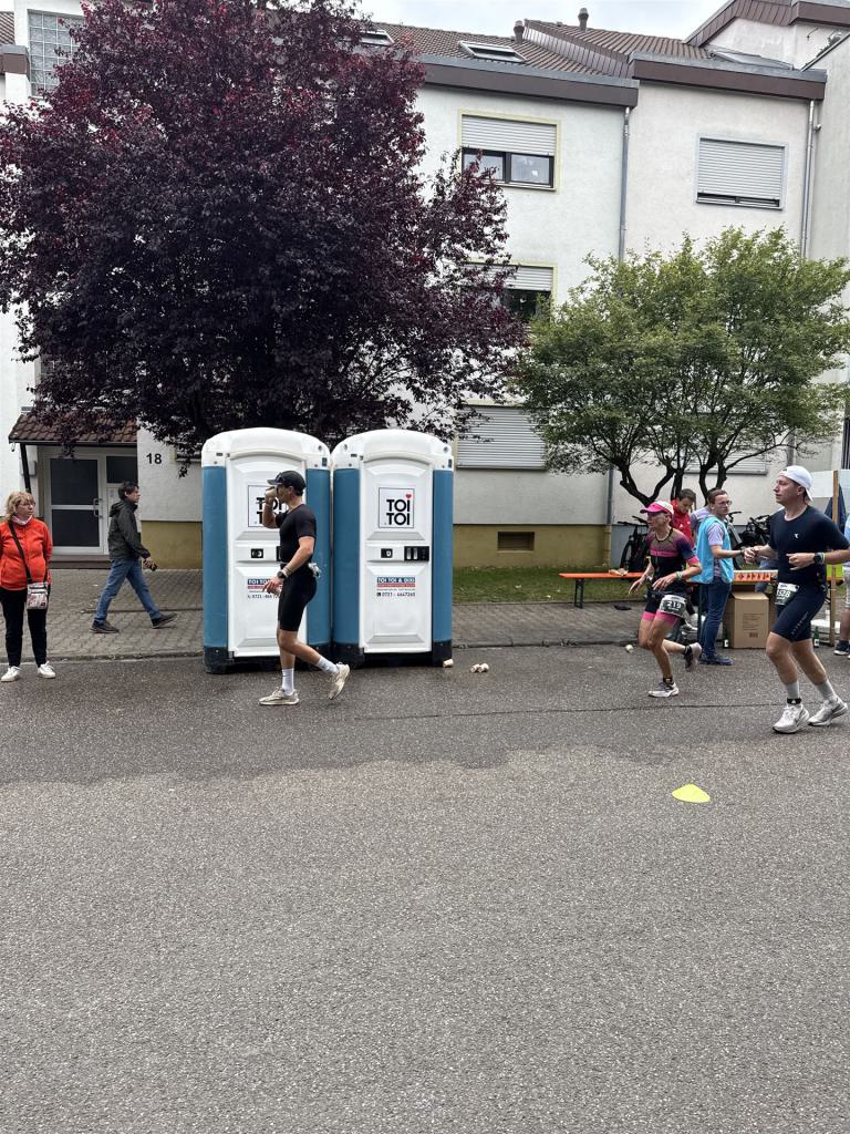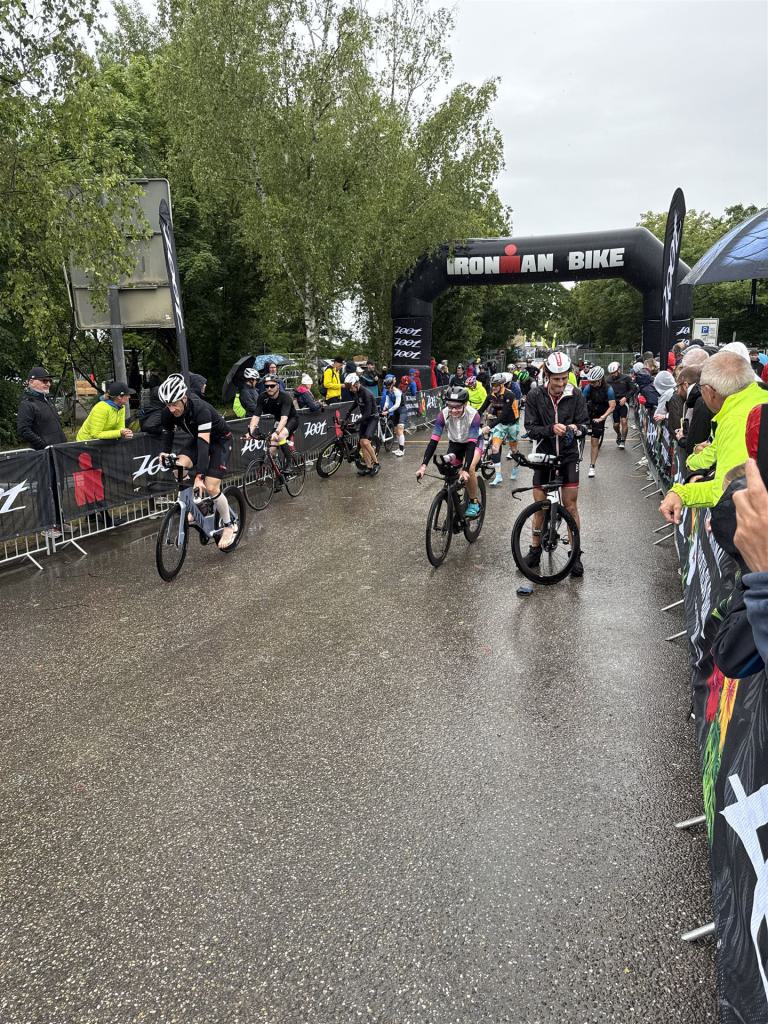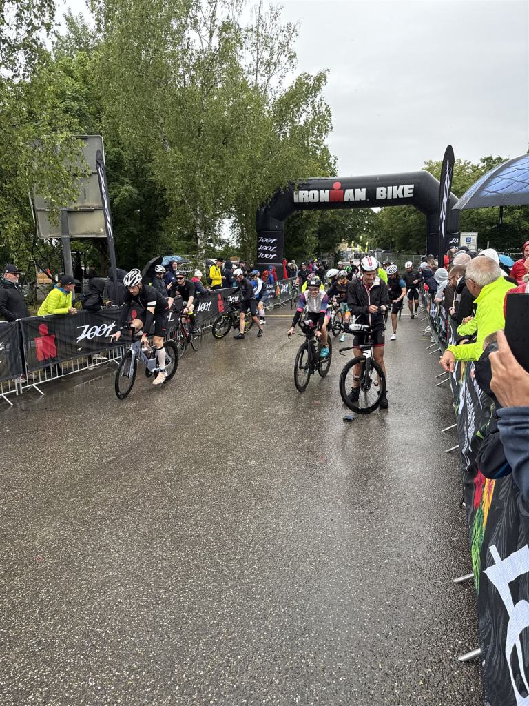 Rein in die Wechselzone und Rad aufpumpen sowie Getränke und Verpflegung am Rad anbringen.