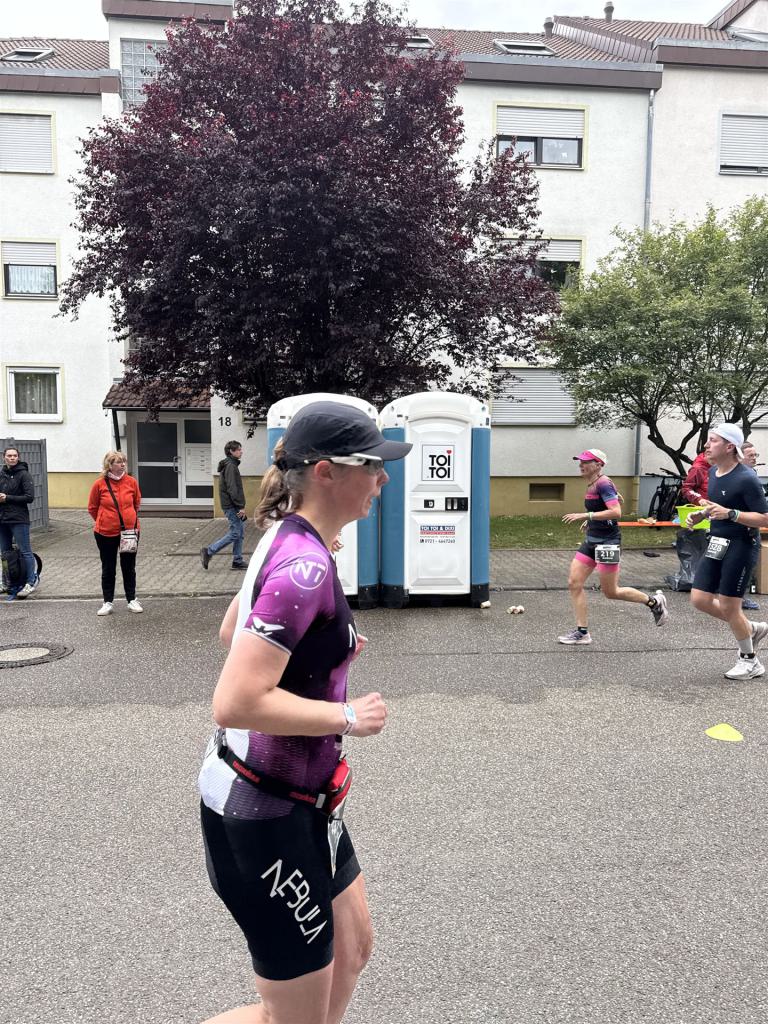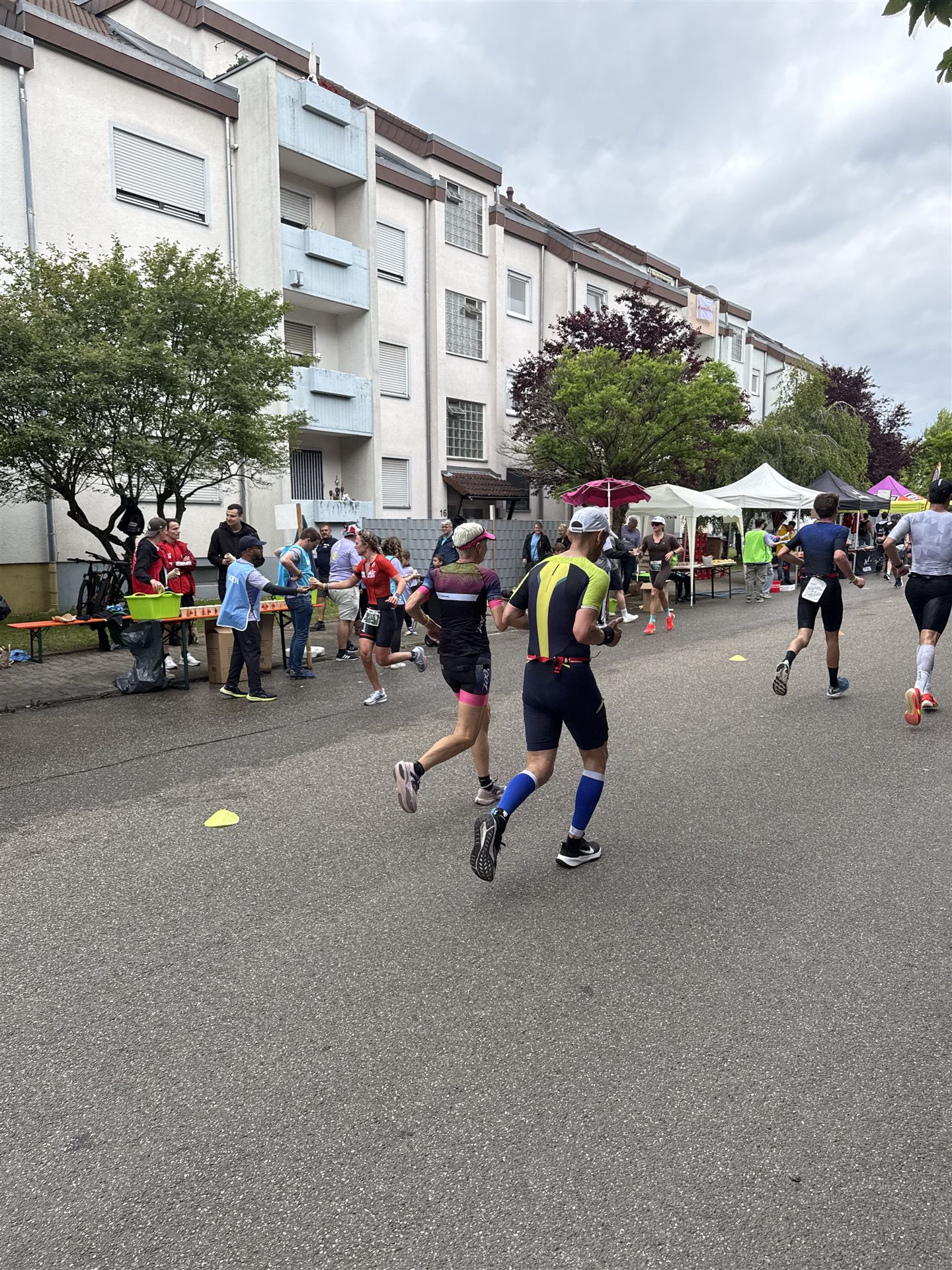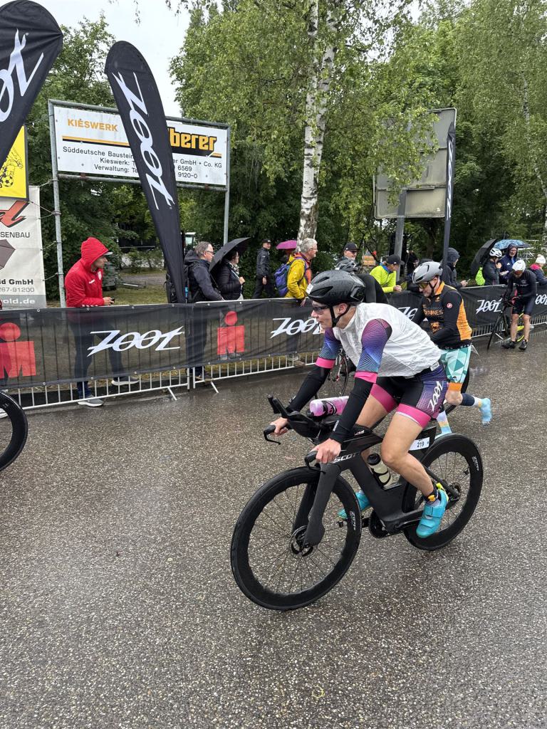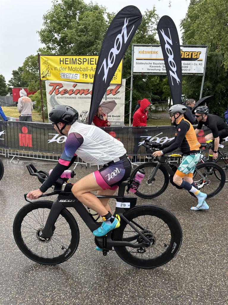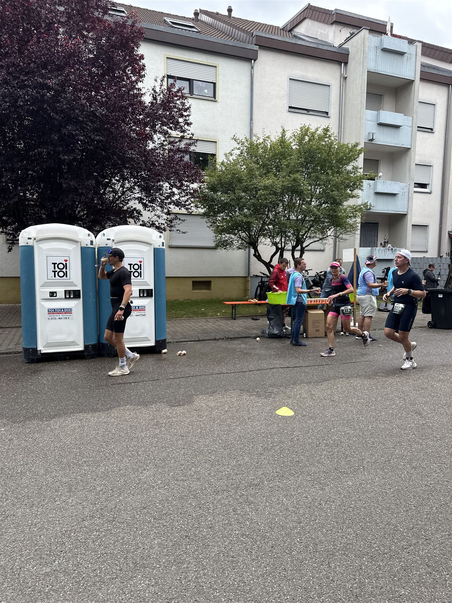 Rein in die Wechselzone und Rad aufpumpen sowie Getränke und Verpflegung am Rad anbringen.